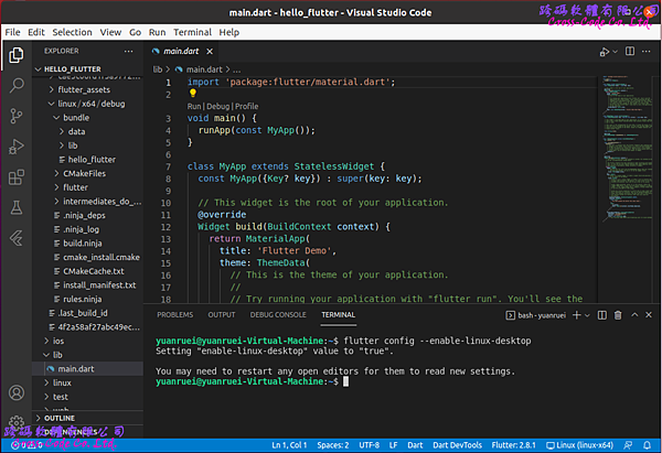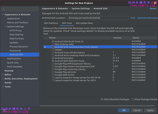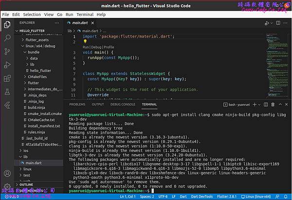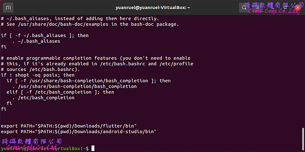 在bashrc檔案中設定: (1) Flutter SDK (2) Android Studio路徑