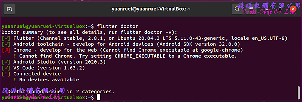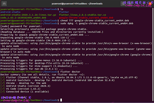 5-2. 安裝 Chrome 瀏覽器套件和執行flutter doctor確認安裝結果