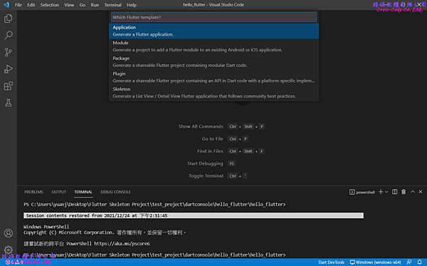 Flutter 提供應用程式(Application)專案範例,主要提供下列功能說明: