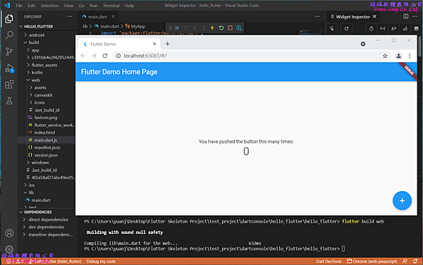 使用 Scaffold 類別作為初始化 MaterialAppClass 的相關參數,並且以 StatefulWidget 類別 Wrap 為可變狀態的物件用來保存目前_counter值。在預設的模式下只有針對Scaffold的appBar 、body 及floating ActionButton 欄位進行簡易的設定。