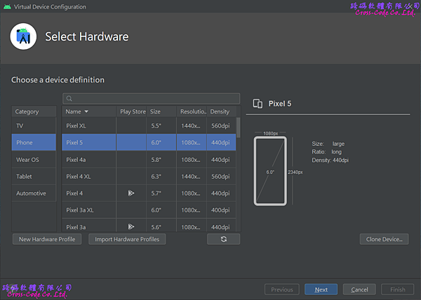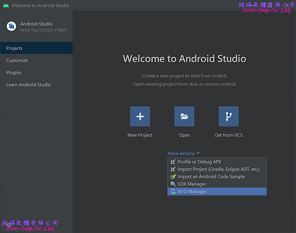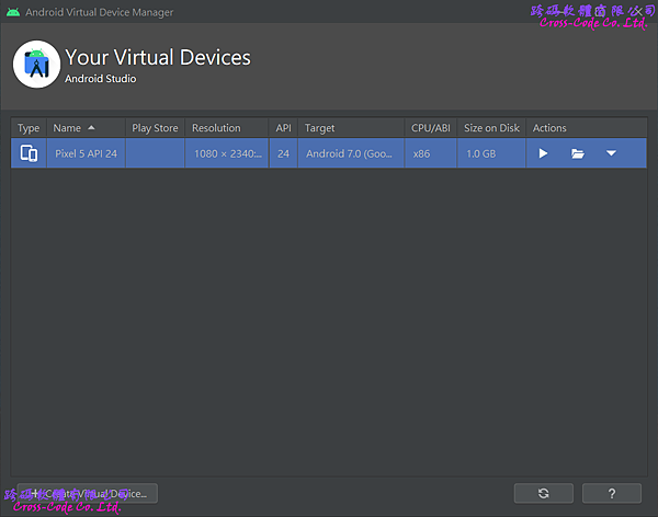 在執行Android APP時,若無實體裝置需要先開啟Android Studio並使用AVD Manager建立模擬Android裝置