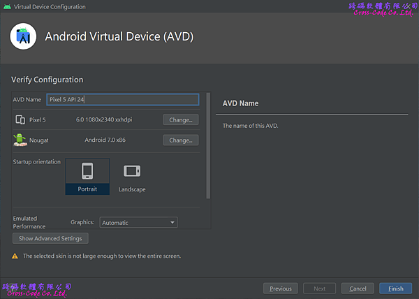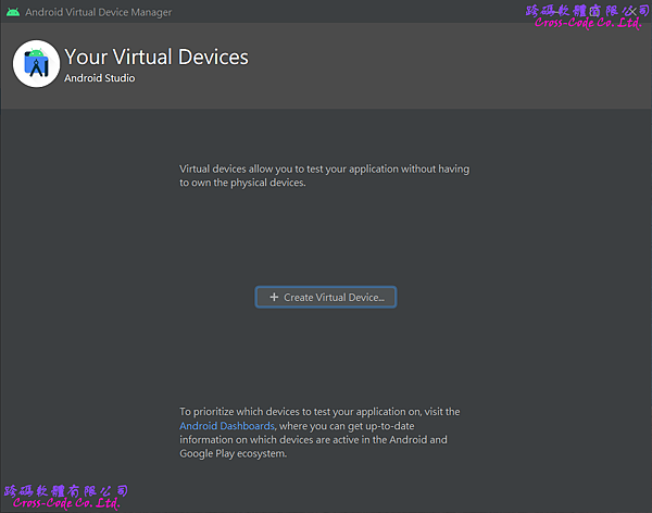 在執行Android APP時,若無實體裝置需要先開啟Android Studio並使用AVD Manager建立模擬Android裝置
