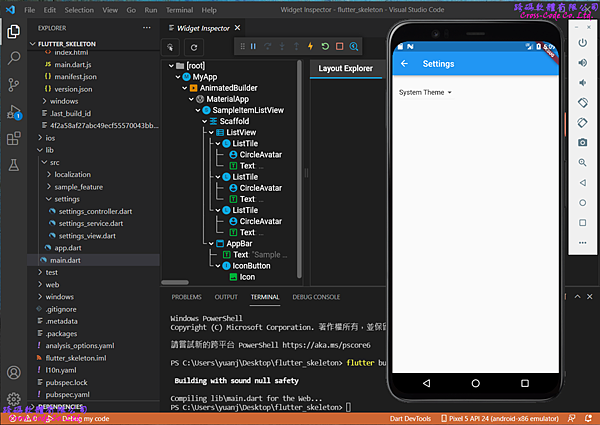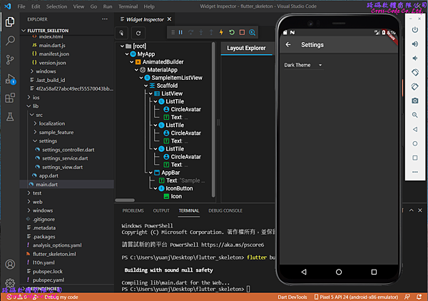 Flutter 提供骨架(Skeleton)專案範例,主要提供下列功能說明: