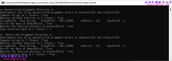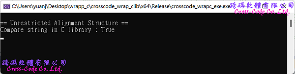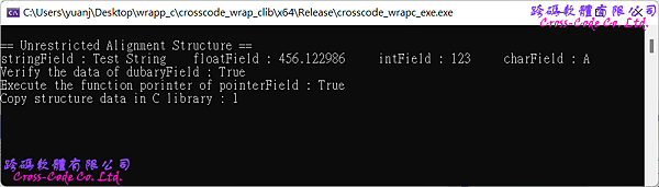 // Build and initial data structure in the C executable. static const TCHAR* pCmpStr = L"Test String"; UnrestrictedAlignmentStruct sUnrestrictedAlignmentStruct = { 0 }; wcsncpy_s(sUnrestrictedAlignmentStruct.stringField, wcslen(pCmpStr) + 1, pCmpStr, sizeof(sUnrestrictedAlignmentStruct.stringField)); // Define the function prototype of the C library. typedef bool (__stdcall* CompareStringOfUnrestrictedAlignmentStructProc) (HANDLE pClassHandle, pUnrestrictedAlignmentStruct pStrut); // Find the the pointer of function in the C library. CompareStringOfUnrestrictedAlignmentStructProc compareUnrestrictedAlignmentStructProc = (CompareStringOfUnrestrictedAlignmentStructProc)GetProcAddress(hinstLib, "CompareStringOfUnrestrictedAlignmentStruct"); // Compare the string of data structure in the C library. wprintf(L"Compare string in C library : %s\n", compareUnrestrictedAlignmentStructProc (hinstLib, &sUnrestrictedAlignmentStruct) == 1 ? L"True " : L"False"); |