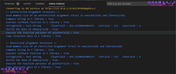 // Create a data struct in Dart executables final sUnrestrictedAlignmentStruct = calloc<UnrestrictedAlignmentStruct>() // Define the function prototype of the C library typedef GetSizeOfUnrestrictedAlignmentStructProcForNative = int Function(Pointer classHandle,RestrictedAlignmentStruct confirmStrut); typedef GetSizeOfUnrestrictedAlignmentStructProcForDart = Int32 Function(Pointer classHandle,RestrictedAlignmentStruct confirmStrut); // Find the the pointer of function in the C library late final getSizeOfUnrestrictedAlignmentStructProc = _wrapc_lib.lookupFunction< GetSizeOfUnrestrictedAlignmentStructProcForDart, GetSizeOfUnrestrictedAlignmentStructProcForNative >('GetSizeOfUnrestrictedAlignmentStructProc'); // Display the memory size of data structures in executeables and libraries. int retSize = getSizeOfUnrestrictedAlignmentStructProc(classHandle.value, sUnrestrictedAlignmentStruct.ref); print("Used memory size of an unrestricted alignment struct in execute(${sizeOf<UnrestrictedAlignmentStruct>()}) and library( $retSize)"); |